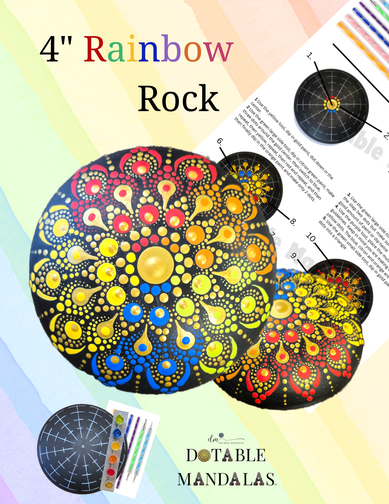 Rainbow 4" Rock Dot-Painting Pattern Kit