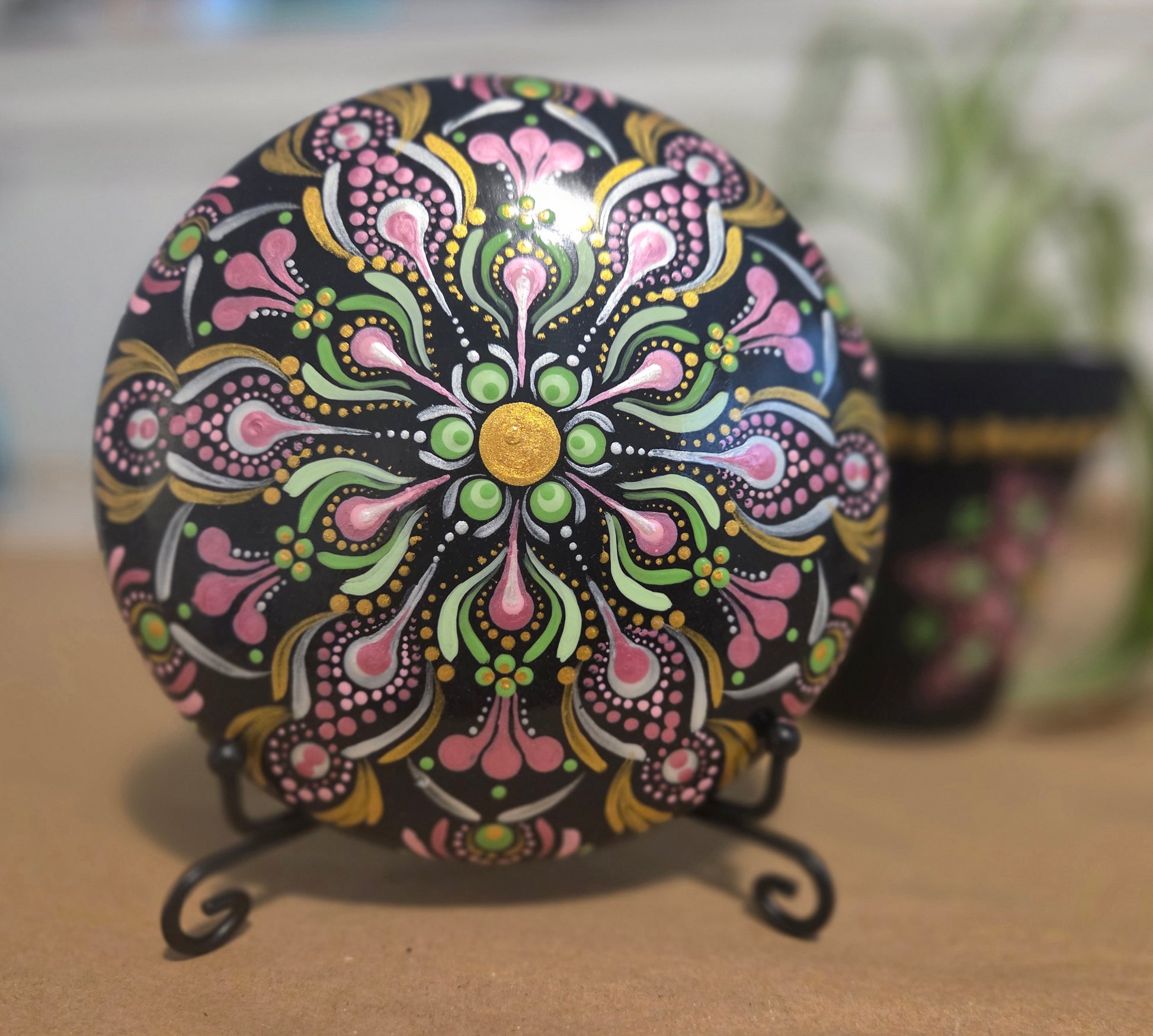 Showcase your painted mandala rocks in style with our 4 or 5-inch Metal Rock Display Stand. Crafted from durable black metal, these sleek stands provide a sturdy and elegant way to display your artwork at home, in galleries, or at events.