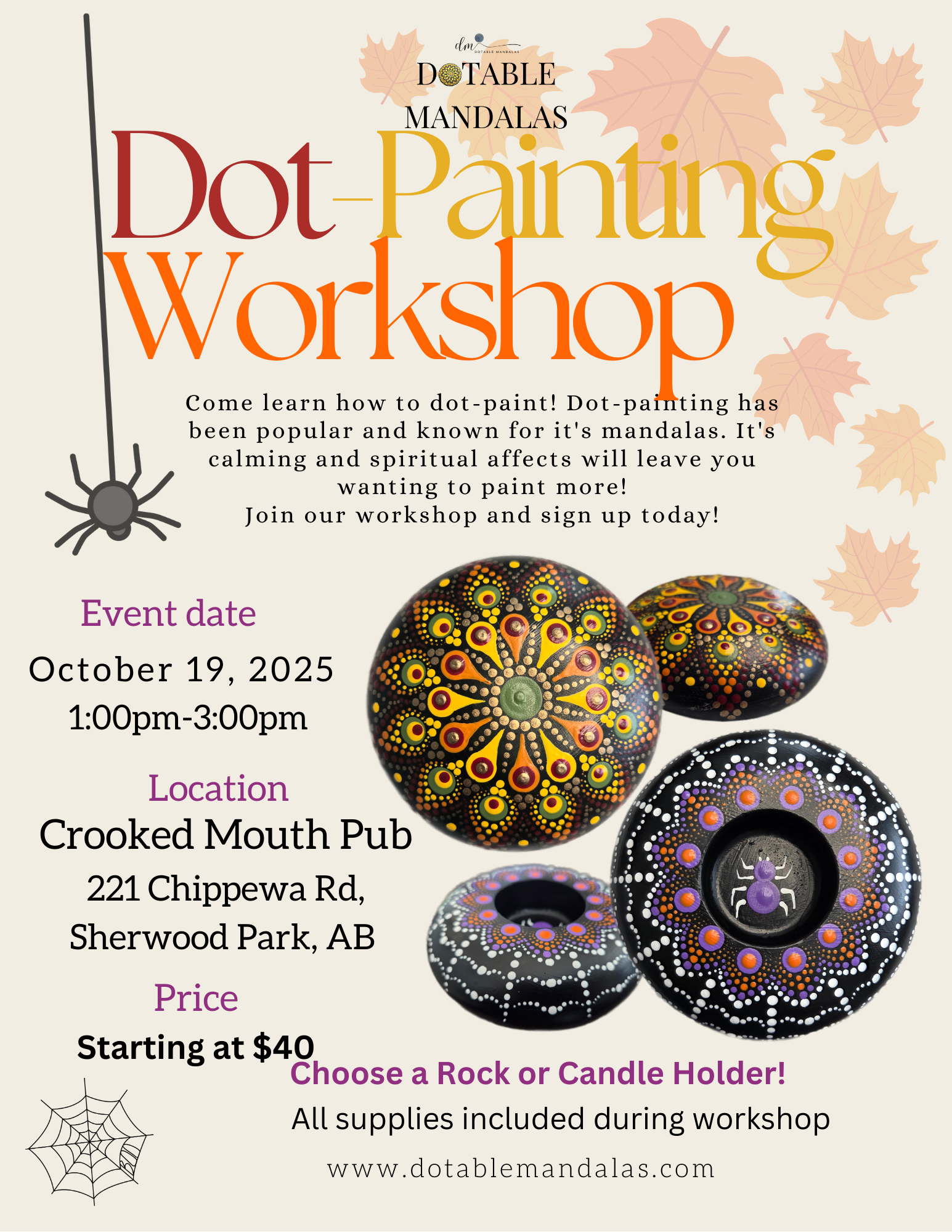 Sherwood Park-Halloween Spider Web or Autumn Leaves Dot-Painting Workshop