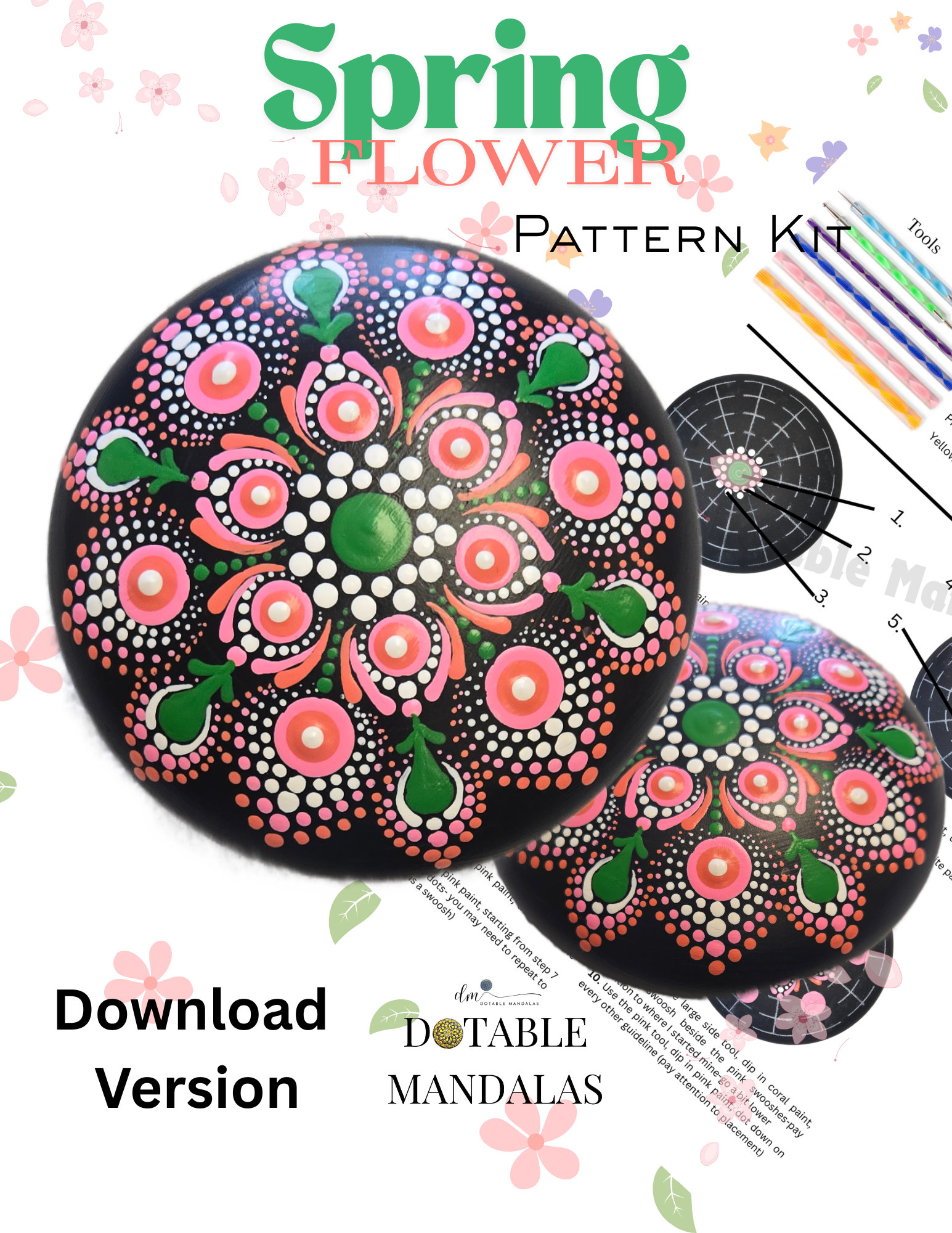 4" Spring Flower Rock Dot-Painting Pattern Download Version