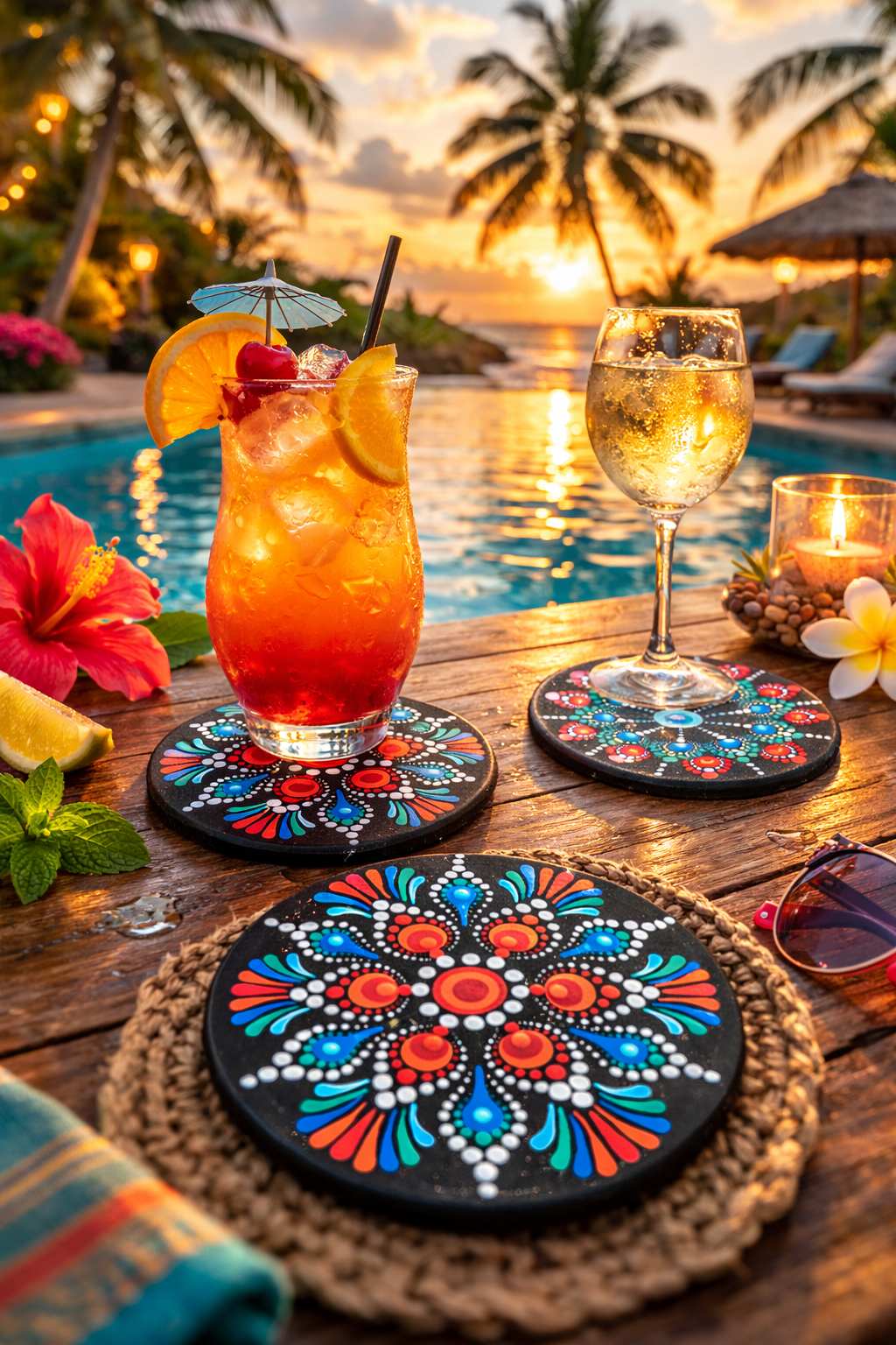 Stratford-Tropical Coastal Vibe Coaster Set Dot-Painting Workshop